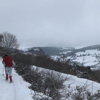 De la neige, il y en a, mais nous ne rencontrons pas les mêmes difficultés que la semaine précédente à Chaudeyrolles. La neige est tassée aujourd'hui et par endroits nous pourrions nous passer des raquettes.